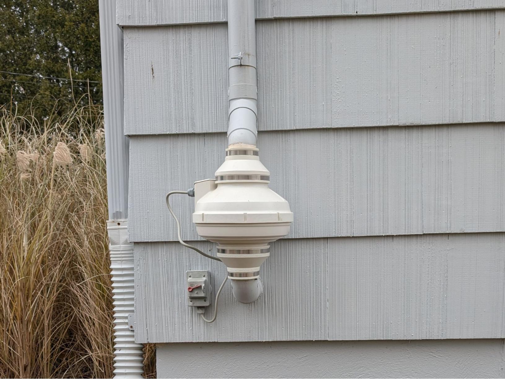 We had the perfect solution for this customer! We installed a radon mitigation system in his home. We identified the specific space where the mitigation system should be installed. After that, we drilled a hole in the floor as well as a hole in the wall for the exterior penetration. We put together the pipes, starting in the floor, and built it out through the exterior penetration to the outside. We secured the pipes to the wall, and then installed the manometer onto the pipe. (A manometer measures the pressure of the radon gas in the system, indicating whether or not the system is functioning). We then went outside to continue building out the system. We installed the fan and continued building out the pipes, securing them to the outside of the home. Our technician then sealed around the holes that had been drilled for the system. Now, the homeowner has a brand new radon system for their new home!