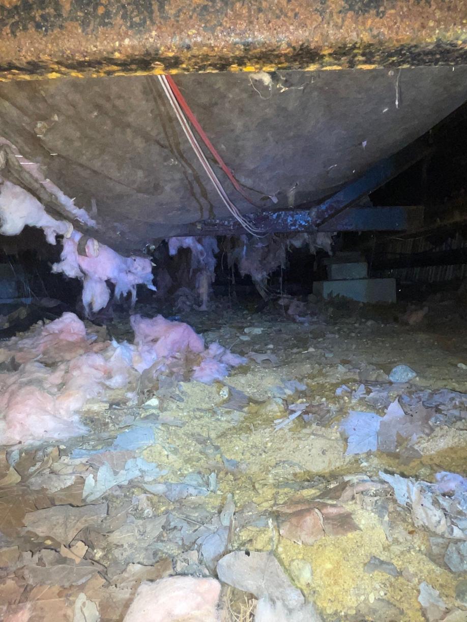 This homeowner in Warren, MA called us looking for insulation for the underside of her mobile home. She had cold floors, high energy bills, mold, and rodents in her home. The crawl space under the mobile home had falling fiberglass batts. She also had sagging floors that needed to be reinforced.