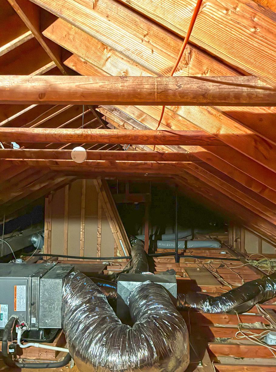 First, we carefully removed all the contaminated fiberglass insulation throughout the attic. Afterward, we disinfected the attic. Next, we air sealed all the gaps and cracks in the attic. This will eliminate air flow between the living space and the attic, improving energy efficiency. Afterward, we added over 10 inches of TruSoft blown-in cellulose insulation. We also installed Tight Shell Can Light Covers over the recessed lights in the attic.