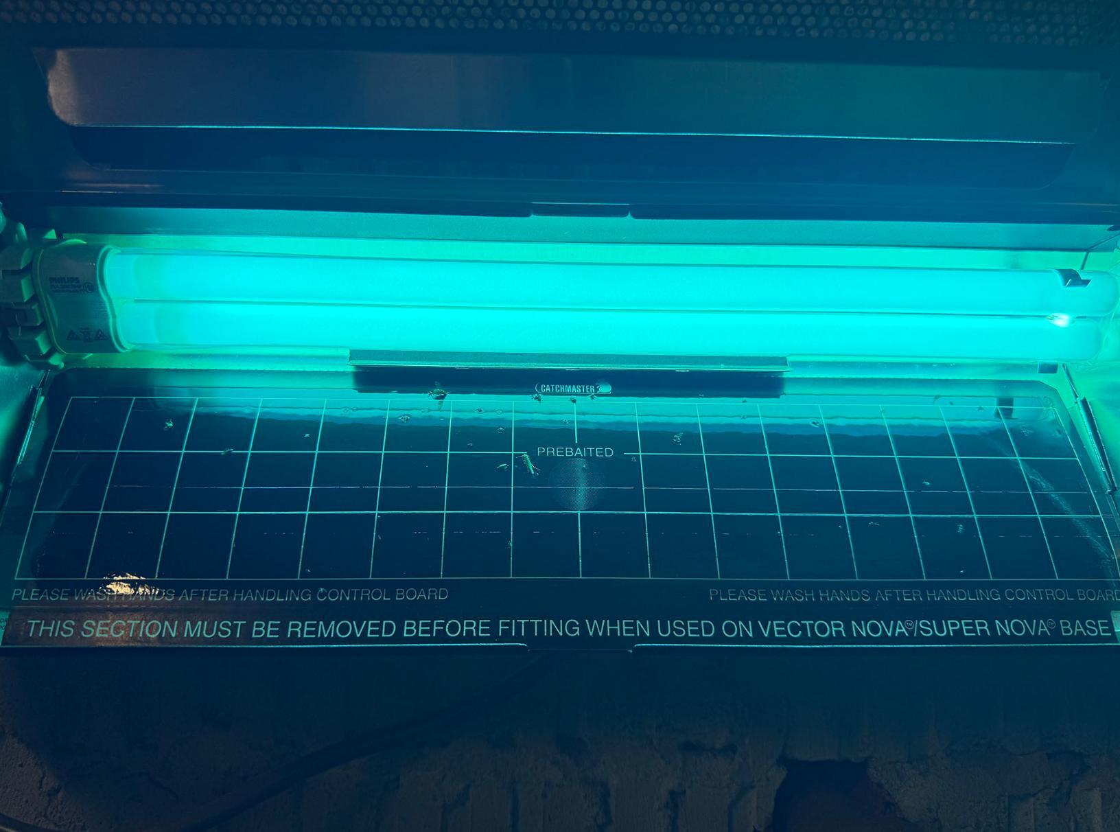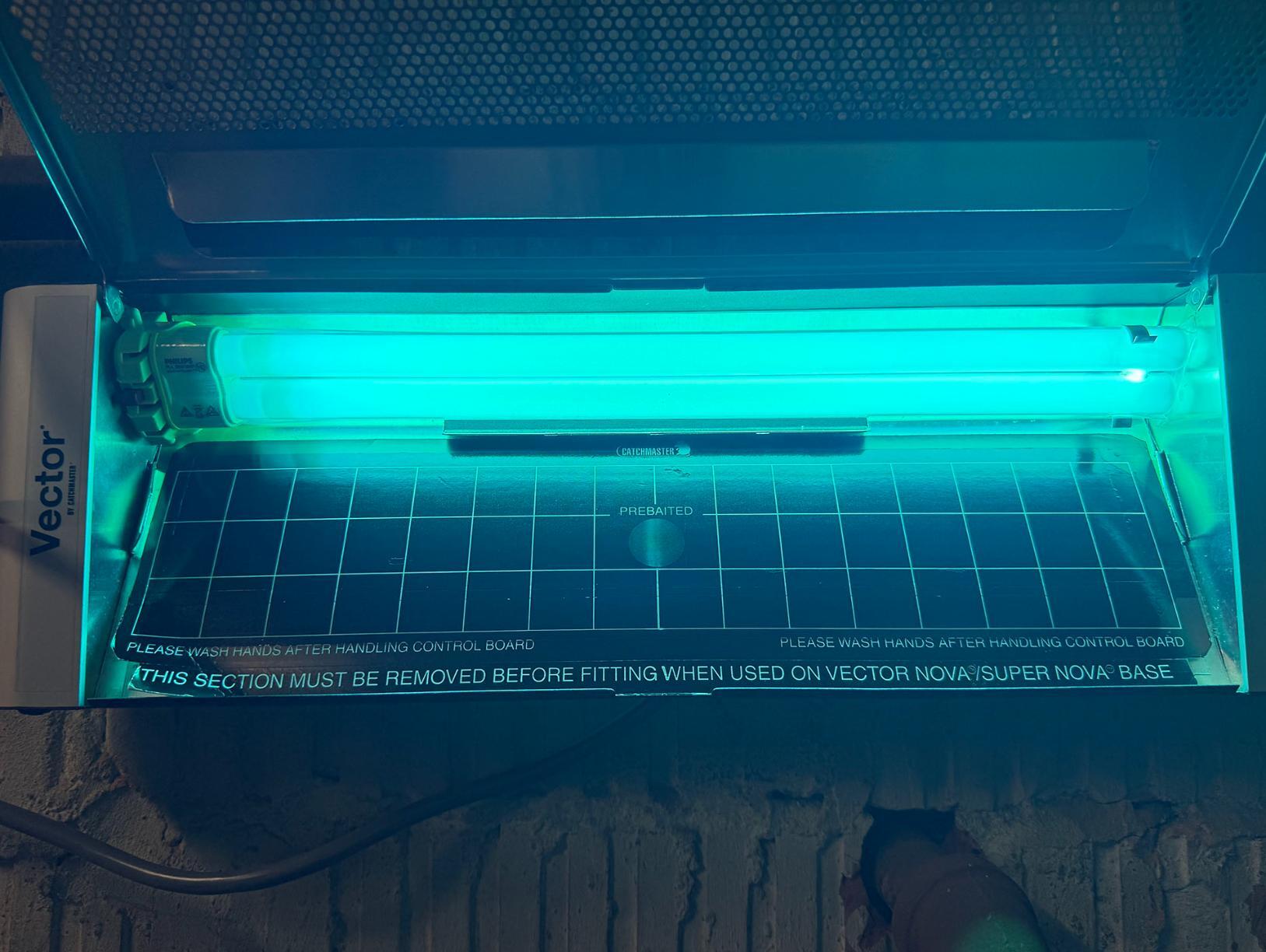 We're returning to this restaurant in Princeton Junction, NJ to change out the glue boards in the UV fly light we recently installed. These devices use an insect-attracting lamp to lure insects to an adhesive trapping glue board. They lure and capture virtually any flying insects such as house flies, bottle flies, mosquitoes, gnats, and moths.