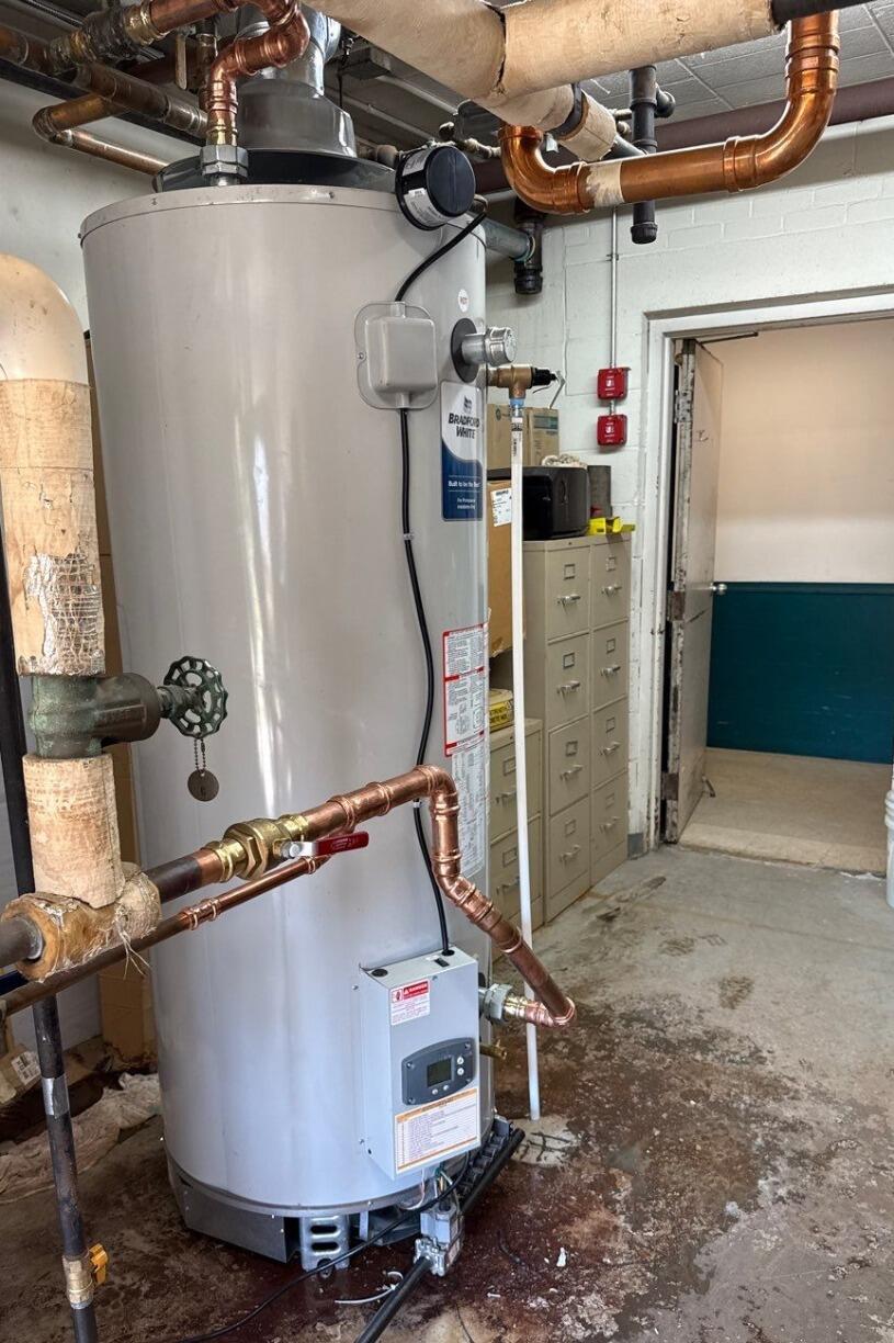 It's a big deal when your water heater goes down at home. Imagine what a big deal it is when a hotel loses their hot water. Lots of angry customers and demands for refunds. Cold showers are bad for business! We've done work for this client before so when they called with an emergency water heater failure, the Alber Team sprung into action. We made a special trip to Philadelphia to pick up a new high efficiency water heater from a distributor then drove it back to Mt. Ephraim. The installation crew had the old water heater drained and removed (it weighed over 900 lbs.!) before the new one arrived. About three hours later, the hot water was back on and the day was saved. No refunds were needed.